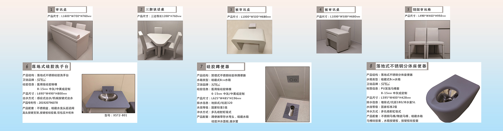 國內(nèi)廣州為中心總廠,北京、成都、湖南、云南、黑龍江、內(nèi)古蒙、海南等省城市公檢法單位大多都在使用我司產(chǎn)品建立辦案區(qū)留置中心,采用新型阻燃環(huán)保防撞軟包產(chǎn)品,軟包防撞家具,硅膠安全防撞潔具等。